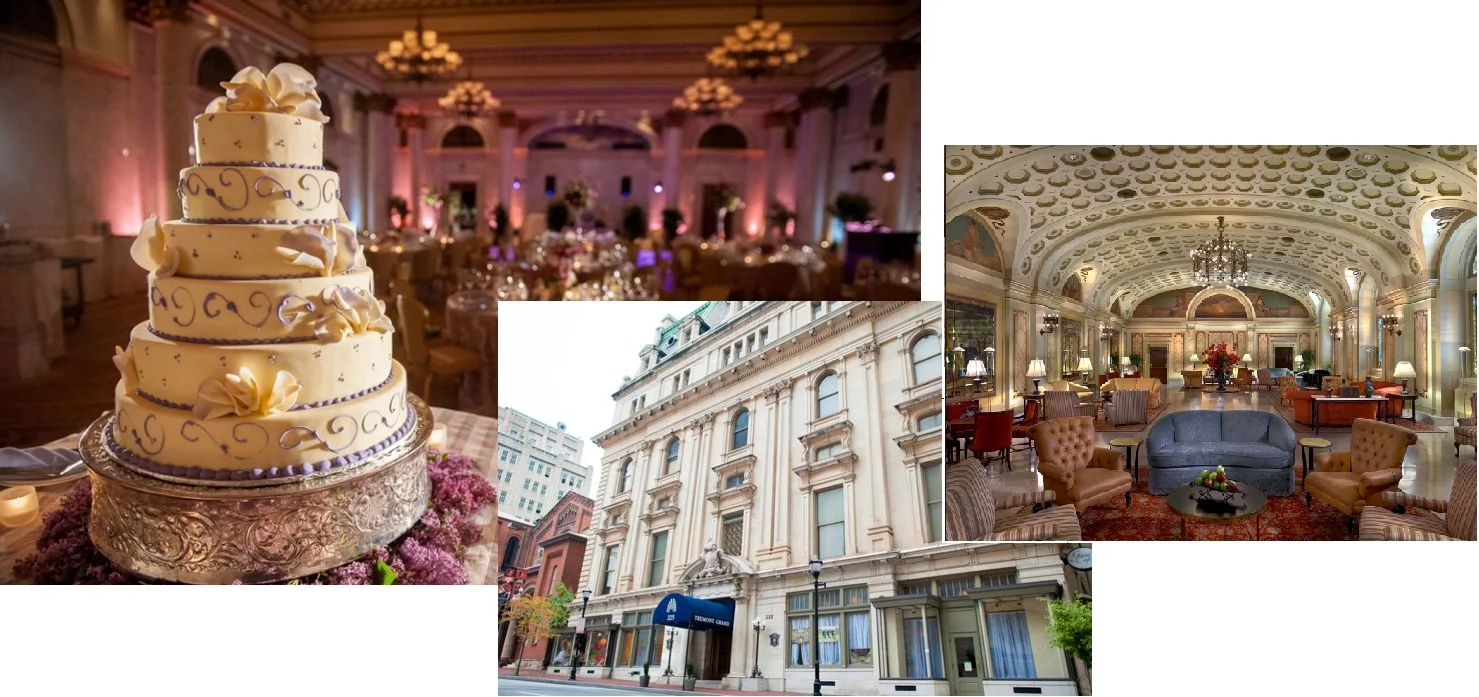The reception is just 3 blocks from the church and connected to the hotel via indoor walkway, accessible through the 5th floor. The Grand Historic Venue also has an entrance on Charles Street. Cocktail hour and hors d'oeuvres begin at 4:30, with dinner and dancing immediately to follow. We have tried to minimize the time between ceremony and reception, but please be advised that the venue will not open doors until 4:25 PM. Use a few minutes of extra time to head back to your hotel room and/or grab a drink at the Embassy Suites bar.