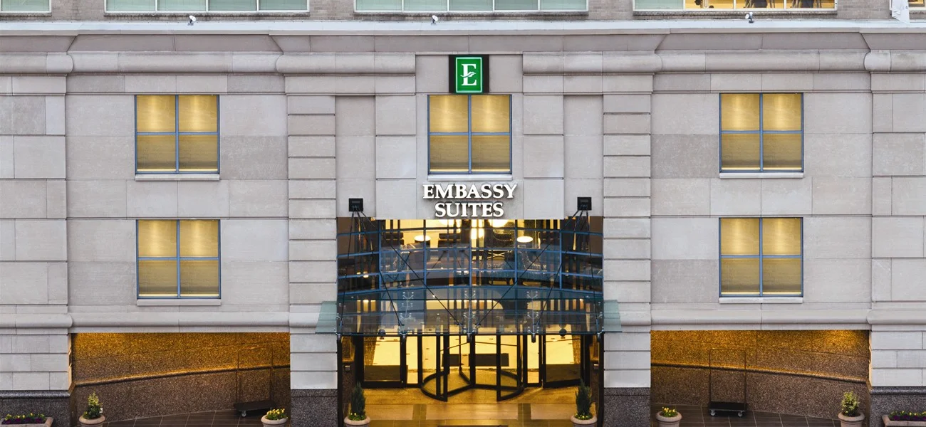 - There are options for even larger rooms that aren't in our discounted package, but may be of interest for parties that would like to share. For example, a two bedroom suite (two separate bedrooms, two bathrooms, living room with a sofa bed, dining room/kitchenette) is available now at a rate of $329. To learn more, or to make a reservation for a larger room, visit the Embassy Suites public reservation page by clicking here.